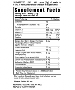 Collagen is essential to building and maintaining healthy connective tissue throughout your body including your joints. Collagen Peptide – Joint Health Support was designed to go beyond supporting connective tissue to delivering nutrients that specifically target tissues in and around the joints including cartilage, ligaments, and tendons. It provides the five main collagen types (I, II, III, V, and X) plus hyaluronic acid, turmeric, MSM, glucosamine and more for complete joint health support.