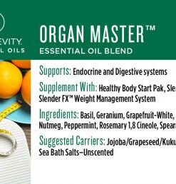 Organ Master is a powerful blend made with 100% pure, therapeutic Youngevity Essential Oils. This blend contains: Basil-Sweet, Geranium, White Grapefruit, Lemon, Marjoram-Sweet, Nutmeg, Peppermint, Rosemary 1.8 cineol and Spearmint.