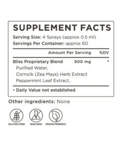Embrace a restful nightÂ’s sleep with Bliss Sleep Spray. Thanks to this dietary supplements proprietary blend of antioxidant-rich corn silk and soothing peppermint, you can breathe easier and relax your body for a truly deep, satisfying rest each night.