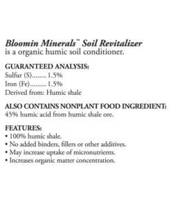 Bloomin Minerals is a 100% natural humate soil conditioner and plant food containing up to 76 organically-bound earth elements. It contains no added binders or fillers.