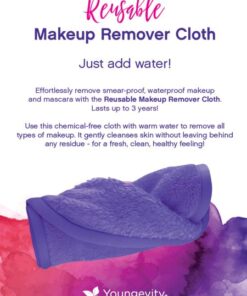 Effortlessly remove smear-proof, waterproof makeup and mascara with this Reusable Makeup Remover Cloth. Lasts up to 3 years! Use this chemical-free cloth with warm water to remove all types of makeup. It gently cleanses skin without leaving behind any residue – for a fresh, clean, healthy feeling!